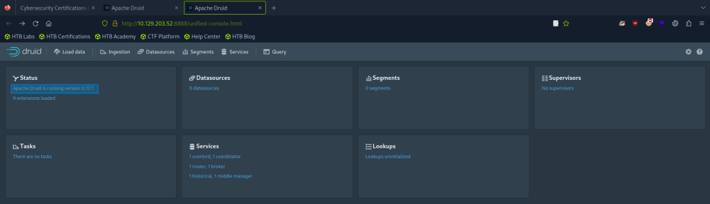 Once the scan is finished there are two ports open on 8081 and 8888 that show Apache Druid services in use.